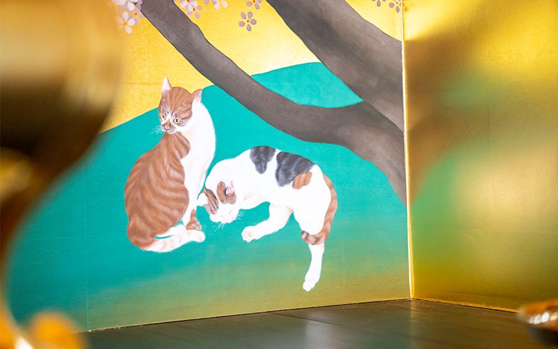 描かれている猫は3匹。親しみやすさを感じていただける本堂です。
