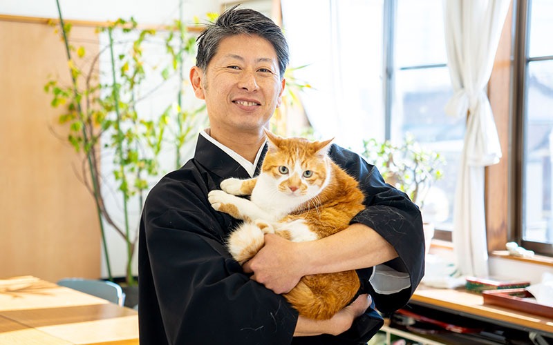 という無常観を表すだけでなく、私自身が春を好むことにも由来しています。また、本堂の両側には、現在飼っている猫が描かれています。これは、言葉や教えのみに限らず、視覚的にも心を癒してほしいと考えてのことです。